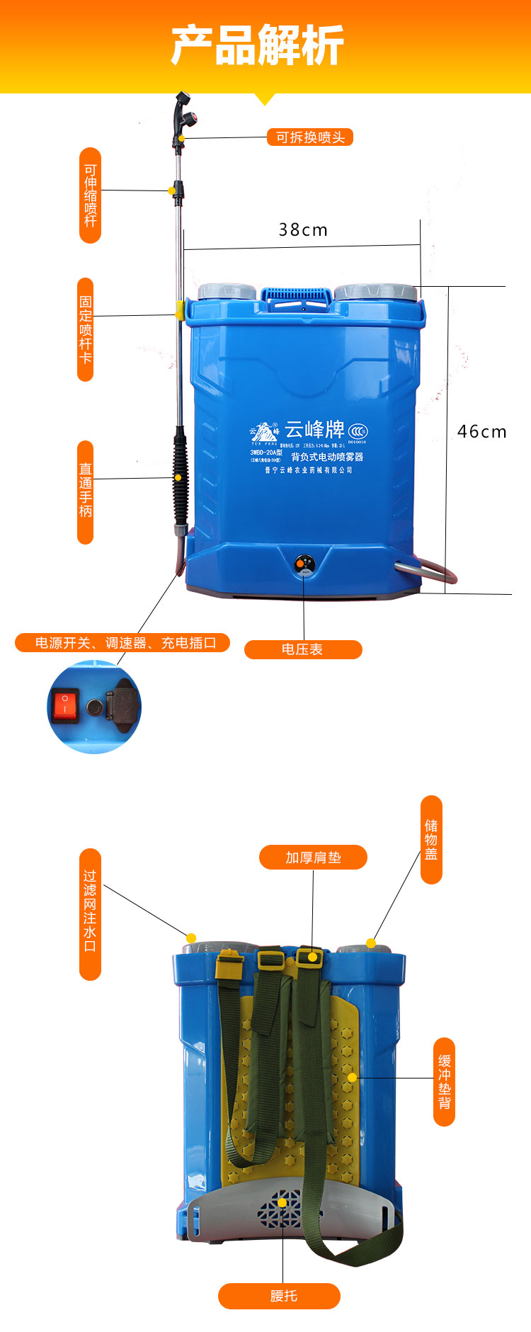 新款雙蓋電動八角雙水泵噴霧器